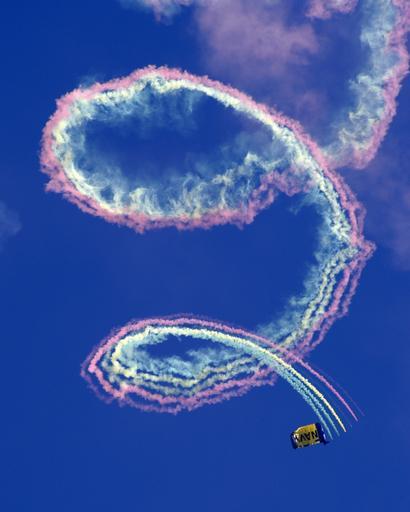 Keywords: oceana virginia sky clouds loops smoke parachutist sky diver jumping nature outside colorful