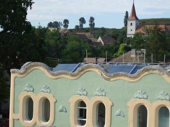 Keywords: Ocna sibiului, biserica si statie.jpg fr Biserica Caciulata depuis le toit de la station balnéaire own Martin Greslou 2008 Ocna Sibiului spa complex Orthodox church of the Archangels in Ocna Sibiului