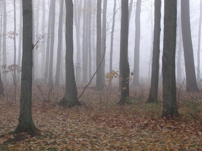 Keywords: mist maple tree morning autumn fall outdoor landscape forest