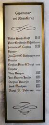 Keywords: Odden Kirke indre series pastorum 3.jpg Odden Kirke præstetavle own Own photo 2007-08 Gunnar Bach Pedersen PD Odden Kirke Series Pastorum Other furniture in Danish churches GunnarBach
