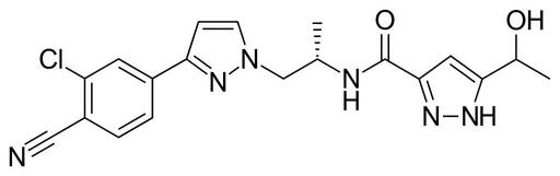 Keywords: ODM-201.svg Chemical structure of ODM-201 Own 12 13 10 January 2016 UTC Ed Edgar181 Antiandrogens Benzonitriles Monochlorobenzenes Pyrazoles