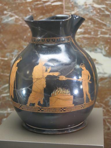 | Keywords: Oenochoe attique à figures rouges (Louvre, G 402).jpg Oenochoe with red figurs with a scene of sacrifice An Oenochoe pouring wine was a distinctive type of Greek pottery vessel for pouring wine Clay Athens Circa 430 - 425 BC Purchase 1875 Louvre museum Paris France Œnochoé attique à figures rouges avec scène de sacrifice Un Œnochoé verse vin était un type particulier de vase grec pour verser le vin Argile Athènes Vers 430 - 425 av J -C Achat 1879 Musée du Louvre sf 2016-01-06 Tangopaso MNB 1705 G 402 Greek antiquities in the Louvre - Room 8 Ancient Greek oinochoes Ancient Greek pottery in the Louvre 430s BC pottery in France |