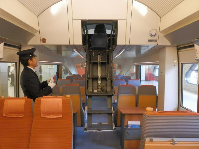 | Keywords: OER 50000 inside Ladder 2.jpg Interior of an Odakyu 50000 series VSE Romancecar EMU showing the retracting ladder used to access the driver's cab situated above the passenger compartment 小田 50000形VSE車の運転台への昇降用梯子(許可を得て撮影) Own Cassiopeia sweet 2013-04-05 thumb left File OER_50000_inside_Ladder_1 jpg Interiors of Odakyu 50000 series Rail vehicles with open doors Stairs in Japan Stairs in vehicles | ||||