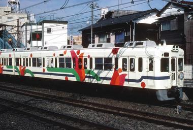 Keywords: Oerflowertrain1.JPG en Odakyu Electric Railway 2600 series EMU in flower train livery type 1 at Higashikitazawa station own Shellparakeet 1982-06-22 Cc-zero 1982 in rail transport in Japan Odakyu 2600 series