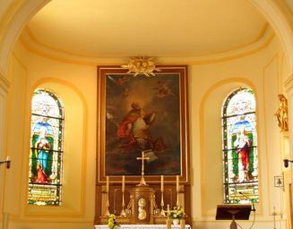 | Keywords: Offenheim StArbogast 15.JPG Alsace Bas-Rhin Offenheim Eglise St Arbogast Choeur avec le maître-autel XVIIIe Tableau St Arbogast XVIIIe own 2012 Ralph Hammann Cc-zero IM67009954 IM67009955 Artwork / Œuvre d'art / Kunstwerk Artist Saint Arbogast est représenté agenouillé Devant lui sur un parchemin le plan de l'église d'Offenheim oil canvas 540 cm de haut Eglise St Arbogast Offenheim Maître-autel object history Tableau mis en place avec le maître-autel après la construction de l'édifice en 1789 other versions IM67009955 Ralph Hammann PD-old accession number Altars in Église Saint-Arbogast d'Offenheim Photographs of Stutzheim-Offenheim by Ralph Hammann Taken with Canon PowerShot SX20 IS Neoclassical church paintings in Alsace 19th-century church paintings in Alsace Arbogast von Straßburg Church paintings in Bas-Rhin |