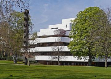 Keywords: office building sculpture park chestnut maintained terrace construction open-plan offices architecture patina water feature modern münster westfalen lbs north rhine westphalia