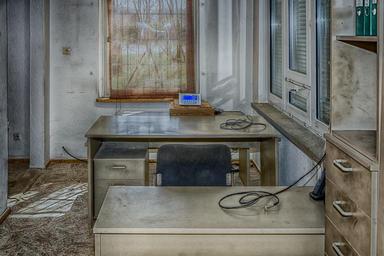 Keywords: office workplace dirty desk still life