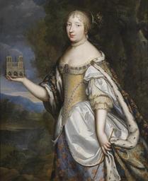 | Keywords: Official portrait of Queen Marie Thérèse depicted as the patron of the Cathedral of Notre-Dame, Paris from the studio of the Beaubrun brothers.jpg artwork Creator Charles Beaubrun langswitch Porträt der Königin Maria Theresia von Frankreich als Schirmherrin der Kathedrale Notre-Dame de Paris Portrait of Queen Marie Thérèse of France as patron of the Cathedral of Notre-Dame de Paris century 17 Oil on canvas cm 119 98 1 Gallery http //www dorotheum com other versions PD-old-100 DEFAULTSORT 1660s c; Maria Theresa of Spain by Beaubrun Charles Beaubrun Henri Beaubrun 17th-century portrait paintings location missing Marie Thérèse of Austria 17th-century portrait paintings from France not categorised by year 17th-century oil on canvas paintings Portrait 17th-century oil portraits of standing women at three-quarter length Corsage jewellery in art Ermine clothing in art Female hair fashion in art Females with hair with pearl jewellery in art Females with pearl earrings in art Females with pearl necklaces in art Images from Dorotheum Mantle fleurdelisé in portrait paintings Portrait paintings of queens of France Paintings of Notre-Dame de Paris Donor portraits with church models Portrait paintings of women wearing crowns Portraits holding sceptres Portraits with natural background Three-quarter view painted portraits of women facing left |