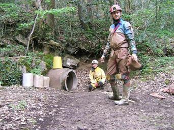 Keywords: Ogof nadolig entrance.jpg Cavers at entrance of en Ogof Nadolig own own camera 2006-05 Julian Todd Caves in the United Kingdom Caving Cave entrances