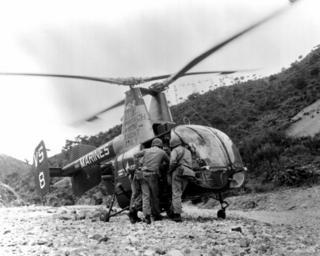| Keywords: OH-43D Huskie VMO-2 Korea 1960.jpeg U S Marines from A Company 1st Battalion 5th Marine Regiment talk with a pilot from Marine observation squadron VMO-2 before he makes a reconnaissance flight in a Kaman HOK-1 Huskie helicopter BuNo 129827 during operation Seahawk in South Korea on 1 June 1960 Operation Seahawk was a combined amphibious landing with South Korean forces in June 1960 The HOK-1 129827 was redesignated OH-43D in 1962 and flew with the civil registry N5172Q after its military service http //www defenseimagery mil U S DefenseImagery photo VIRIN http //www dodmedia osd mil/DVIC_View/Still_Details cfm SDAN HMSN9806925 JPGPath /Assets/1986/Navy/HM-SN-98-06925 JPG HM-SN-98-06925 U S National Archives file No 127-GK-13-A182678 1960-06-01 Photographer's Name Benninghoven PD-USGov Kaman HH-43 Huskie South Korea in the 1960s Marine Observation Squadron 2 |