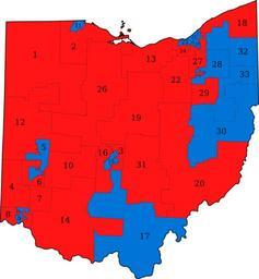 MAKE A MEME View Large Image Ohio Senate districts, party colors (2001-2003), labeled.svg en 2001-2003 parties own TIGER Data Ibagli 2011-03-17 Cc-zero Election maps of Ohio