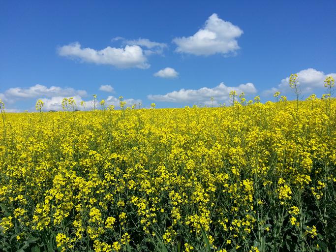 Keywords: oilseed rape summer landscape field of rapeseeds sky spring plant rape blossoms blue flowers fields green arable