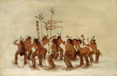| Keywords: Ojibwa dance.jpg Ancient Ojibwa tradition The Snowshoe Dance performed at the first snowfall every year since time immemorial By George Catlin 1835 Creator George Catlin PD-old-100 Works by George Catlin Ojibwa Snowshoeing in art Native American dance of the United States Artworks missing infobox template |