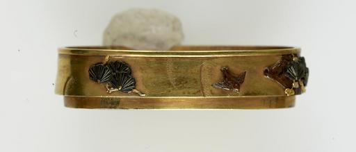 | Keywords: Okada Setsuga - Fuchi with Bird in Flight - Walters 5112912a - Back.jpg A black bird is shown in flight near a tree branch This is part of a mounted set between 1854 1925 Meiji-Taisho gold shakudo silver copper sentoku cm 3 7 accession number 51 1291 2a 18244 William T / Henry Walters Collection Baltimore date and mode of acquisition unknown Walters Art Museum Henry Walters Acquired by William T or Henry Walters Signature Tôkôsai Setsuga place of origin Tokyo Japan PD-Japan Fuchi in the Walters Art Museum Okada Setsuga Media contributed by the Walters Art Museum needs category review |