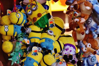 Keywords: oktoberfest stand minions plush toys sales stand stuffed animal cute plush funny fig fun toys children toys cuddly teddy bear folk festival year market hustle and bustle fair children play colorful