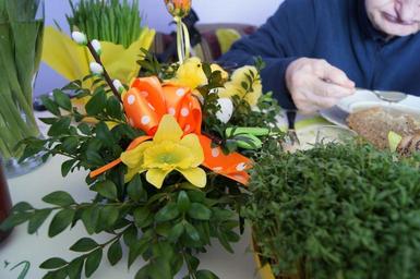 Keywords: old age easter holidays decoration breakfast twigs foliage dining table cuckooflower flowers