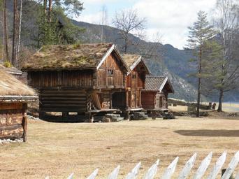 Keywords: old barn wooden cabins rustic barn old weathered fence mountains scandinavian norway