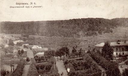 | Keywords: Old Borovsk by A.V.Muratova. Public park.jpg Бо овск Па к на го одище Слева вве ху - улица Казаки сов ул Пе вого ая Снято п едположительно с каланчи на здании п исутственных мест Сп ава здание женской гимназии где п еподавал К Э Циолковский Рядом могила о озовой и У усовой Отк ытка 1910 или 1913 года Фотог афия А В у атовой Borovsk Downtown park on the Kremlin Hill Photo by A V Muratova printed either in 1910 or in 1913 http //borovskold ru/content php page outgallery num 1 gid 1 id 30174685 or 1910 1913 A V Muratova PD-RusEmpire 55 12 34 17739464368765 N 36 29 12 064847946166992 E ImageNote 1 128 330 52 46 800 480 2 thumb Домик за екой на углу Энгельса и Пе вого ая ImageNoteEnd 1 ImageNote 2 581 248 218 114 800 480 2 thumb left Бывшая женская гимназия ImageNoteEnd 2 Borovsk in 1910-1913 Borovsk Kremlin |