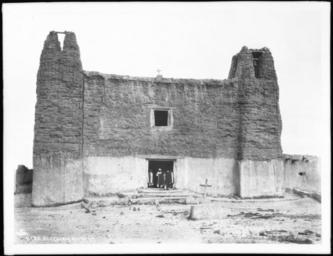 | Keywords: Old church at the Acoma Pueblo, New Mexico, ca.1900 (CHS-4540).jpg en <br> Old church at the Acoma Pueblo New Mexico ca 1900 Photograph of the old church at the Acoma Pueblo New Mexico ca 1900 The old church is constructed from adobe brick Two bell towers flank the main entry over which a small cross stands on the roof Another cross stands on small adobe pedestal in front of the church The rafter tails on the lower part of the church at right are exposed Stucco covers only the lower half of the structure the upper half consisting of exposed brick Five people stand near the church entry Some shrubs grow sparsely in front of the church Call number CHS-4540 Photographer James George Wharton Filename CHS-4540 Coverage date circa 1900 Part of collection California Historical Society Collection 1860-1960 Type images Geographic subject city or populated place Acoma Pueblo Repository name USC Libraries Special Collections Accession number 4540 Microfiche number 1-160-42 Archival file chs_Volume96/CHS-4540 tiff Part of subcollection Title Insurance and Trust and C C Pierce Photography Collection 1860-1960 Repository address Doheny Memorial Library Los Angeles CA 90089-0189 Geographic subject country USA Format aacr2 4 photographs transparency photonegative photoprint b w ; 20 x 25 cm 17 x 22 cm Rights Digitally reproduced by the USC Digital Library; From the California Historical Society Collection at the University of Southern California Subject adlf religious facilities Project USC Repository email specol usc edu Contributing entity California Historical Society Date created circa 1900 Publisher of the digital version University of Southern California Libraries Format aat transparencies; negatives photographic ; photographic prints; photographs Geographic subject state New Mexico Legacy record ID chs-m16875; USC-1-1-1-13461 Access conditions Send requests to address or e-mail given Phone 213 821-2366; fax 213 740-2343 Subject file heading Indians -- Acoma Subject lcsh Indians of North America; Acoma Indians Subject Acoma Indians; Acoma; Acoma Indians circa 1900 date created George Wharton James 1858 1923 http //digitallibrary usc edu/cdm/ref/collection/p15799coll65/id/16797 PD-old-70-1923 Images from USC Digital Library uploaded by Fæ Photographs by George Wharton James California Historical Society Collection 1860-1960 Acoma Pueblo |