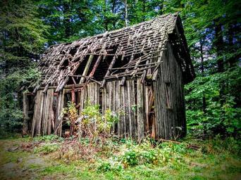 Keywords: old cottage forest hut wood log cabin forest lodge break up rest house lapsed old