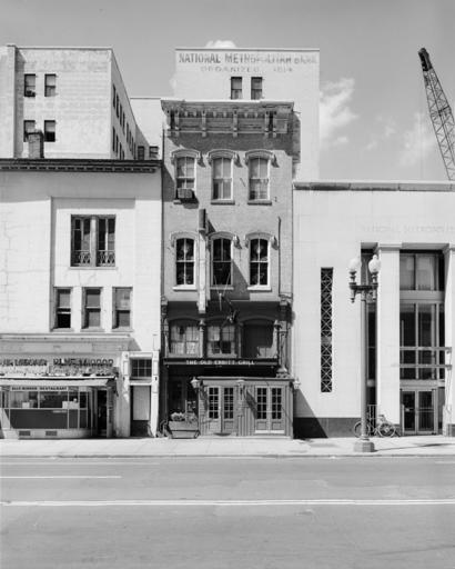 Keywords: Old Ebbitt Grill Old F Street Location front 1967.jpg en Looking north at the entrance to Old Ebbitt Grill located at 1427 F Street NW Washington D C United States Old Ebbitt Grill was originally a restaurant which existed as part of the Ebbitt House hotel which was established in 1856 The hotel was located on the southeast corner of F Street and 14th Street in Washington D C The original hotel was razed in 1872 and a newer much larger hotel with a greatly expanded and much more luxurious dining room built The dining room was significantly renovated in 1910 Ebbitt House closed in 1925 and the restaurant's furnishings were purchased by Anders R Lofstrand Sr a local restauranteur and veteran bar owner The Old Ebbitt Grill restaurant was moved to 1427 F Street NW Lofstrand occupied all four floors of this existing building The restaurant passed into the hands of the Clyde's Restaurant Group in 1970 after a tax auction In 1977 the building was demolished to make way for the Metropolitan Square development However Old Ebbitt Grill re-established itself on the northwest corner of Metropolitan Square at 675 15th Street NW It remains in existence as of 2012 and is the oldest bar and restaurant in the city http //www loc gov/pictures/item/dc0193/ Historic American Buildings Survey Prints and Photographs Division Library of Congress 1967 PD-USGov-Interior-HABS Old Ebbitt Grill 1926 location