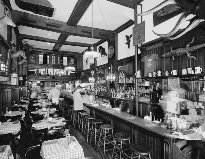 | Keywords: Old Ebbitt Grill Old F Street Location first floor looking north 1967.jpg en Looking north through Barroom on the first floor of the Old Ebbitt Grill located at 1427 F Street NW Washington D C United States Old Ebbitt Grill was originally a restaurant which existed as part of the Ebbitt House hotel which was established in 1856 The hotel was located on the southeast corner of F Street and 14th Street in Washington D C The original hotel was razed in 1872 and a newer much larger hotel with a greatly expanded and much more luxurious dining room built The dining room was significantly renovated in 1910 Ebbitt House closed in 1925 and the restaurant's furnishings were purchased by Anders R Lofstrand Sr a local restauranteur and veteran bar owner The Old Ebbitt Grill restaurant was moved to 1427 F Street NW Lofstrand occupied all four floors of this existing building The restaurant passed into the hands of the Clyde's Restaurant Group in 1970 after a tax auction In 1977 the building was demolished to make way for the Metropolitan Square development However Old Ebbitt Grill re-established itself on the northwest corner of Metropolitan Square at 675 15th Street NW It remains in existence as of 2012 and is the oldest bar and restaurant in the city http //www loc gov/pictures/item/dc0193/ Historic American Buildings Survey Prints and Photographs Division Library of Congress 1967 PD-USGov-Interior-HABS Old Ebbitt Grill 1926 location |
