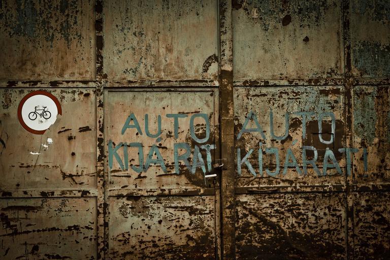 Keywords: old garage door rust iron budapest exit