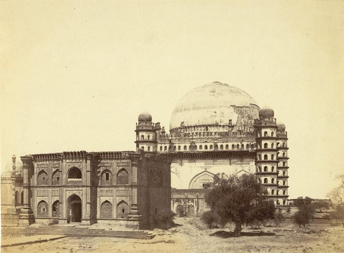 | Keywords: Old GolGumbaz 1890.jpg Photographer; Hinton Henry Medium; Photographic print Year 1860 Photographer's Caption built on a terrace 200 yards square Height of tomb externally 198 ft internally 175 Diameter of dome 124 feet 4 minarets of 8 storeys 12 ft broad entered by winding staircases terminating in cupolas' Print 1 of Henry Hinton's The Ruins of Beejapoor in a series of nineteen views from collodion negatives Bombay 1860 The Gol Gumbaz a grand mausoleum of Muhammad Adil Shah though a structural triumph of Deccan architecture is impressively simple in design with a hemispherical dome nearly 44 mts in external diameter resting on a cubical volume measuring 47 5 mts on each side The dome is supported internally by eight intersecting arches created by two rotated squares that create interlocking pendentives A centotaph slab in the floor marks the true grave in the basement the only instance of this practice in Adil Shahi architecture http //en wikipedia org/wiki/File Old_GolGumbaz_1890 jpg 2006-02-08 Saithilace PD-old Gol Gumbaz 1890 in Karnataka Historical images of Bijapur |