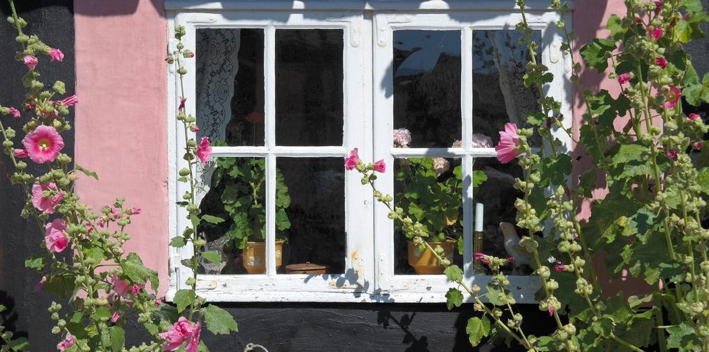 Keywords: old house window flowers bornholm denmark