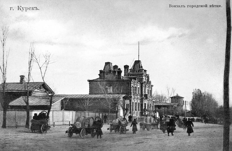 Keywords: Old Kursk II Train Station 4.jpg en Kursk City Train Station Kursk II in the beginning of the XX century ru Го одской вокзал Ку ска Ку ск II в начале XX века до асши ения мезонина Вид вдоль Гене альной ул По сто онам здания к ытые выходы с пе она Вдали станционная водокачка Ломовые извозчики подвозят бочки Здание вокзала до настоящего в емени не сох анилось Old Postcard до еволюционная отк ытка <br>Digital copy downloaded from book циф овая копия заг ужена из книги «В И Скля ук Ф Логачев Ю В Озе ов Ста ые Ку ские Отк ытки Каталог иллюст и ованных почтовых ка точек 1899 1930 годов с объяснением видов го ода Ку ск 2005 г ISBN 5-86354-106-7» http //www old kurskcity ru/book/post-cart/page101 html ст аница 101 Publisher издатель Ш Ка адабжак ~1909 PD-Old Kursk-Vetka Kursk on postcards of the Russian Empire
