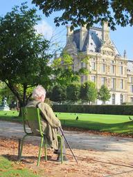 Keywords: old man louvre palace pavillon de marsan lawn park museum paris france grass french garden contemplation thinking retired pensioner thoughtful