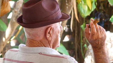 Keywords: old man smoking cigar cuba hat relaxed fold