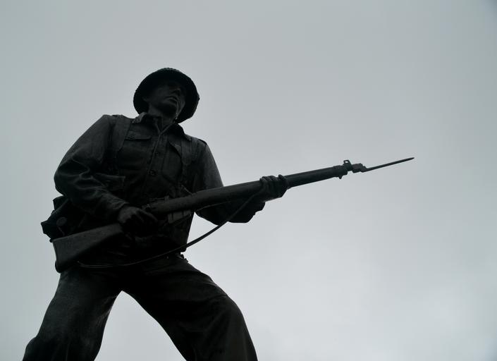 Keywords: old second world war battle former normandy war military army weapon combat memorial tribute commemoration statue heritage france monument history sculpture man soldier courage
