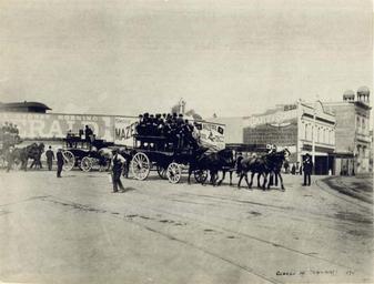 | Keywords: archives state records nsw staterecordsnsw newsouthwales blackandwhite central station centralstation people horses horsebus oh&s ohs sydney morning herald sydneymorningherald outdoor black and white Horse buses outside the old Sydney Railway Station, corner of Devonshire and George Streets Dated: c.1895 Digital ID: 17420_a014_a0140000254 Rights: www.records.nsw.gov.au/about-us/rights-and-permissions We'd love to hear from you if you use our photos/documents. Many other photos in our collection are available to view and browse on our website using Photo Investigator. Horse buses outside the old Sydney Railway Station, corner of Devonshire and George Streets Dated: c.1895 Digital ID: 17420_a014_a0140000254 Rights: www.records.nsw.gov.au/about-us/rights-and-permissions We'd love to hear from you if you use our photos/documents. Many other photos in our collection are available to view and browse on our website using Photo Investigator. |