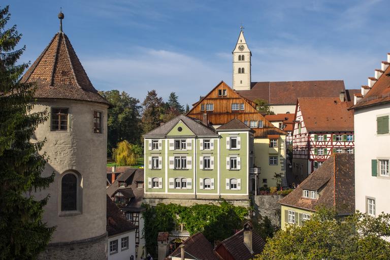 Keywords: old town meersburg lake constance architecture city truss facade fachwerkhäuser homes baden württemberg places of interest germany upper town holiday tower gable structures old houses roof fachwerkhaus church steeple sky blue summer