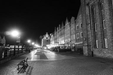 Keywords: old town the old town motlawa gdańsk black and white night street the promenade bench empty street