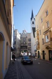 Keywords: old town wasserburg city gate clock tower steeple church auto city historically building architecture facades renaissance sky blue bavaria germany
