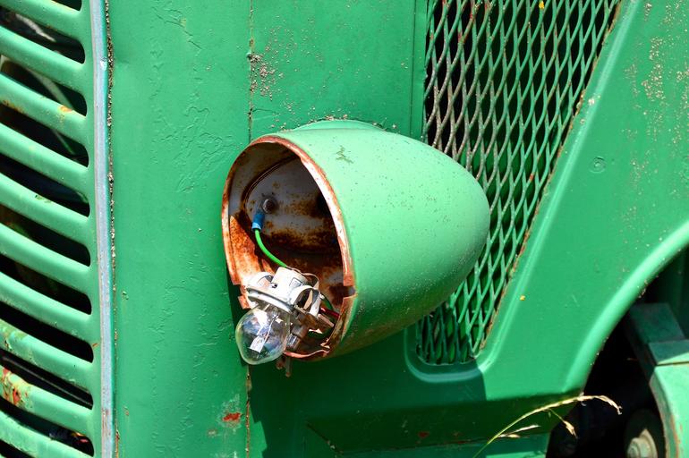 Keywords: old tractor tractor bulldog agricultural machine screw lamps mount mother technology metal construction metal scrap junkyard broken