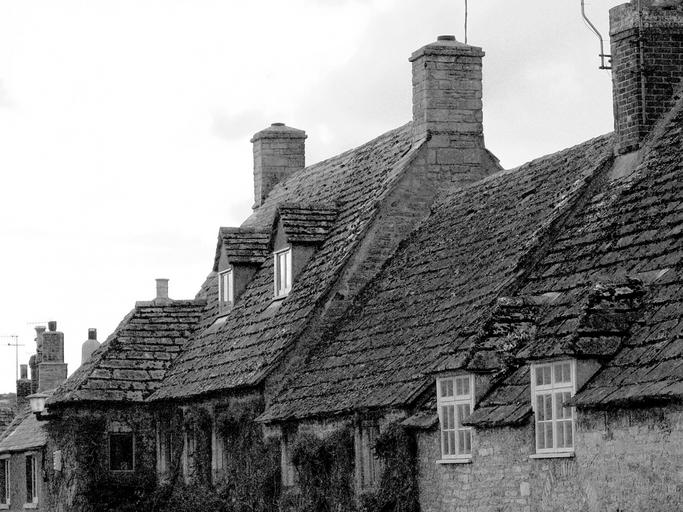 Keywords: old village houses roof corfe stone medieval chimneys moss historical history