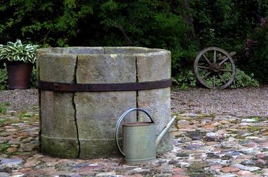 Keywords: old well wood rusty antique close old watering can worn grey