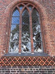 Keywords: old window churh gothic brick pattern mirroring red glasses denmark