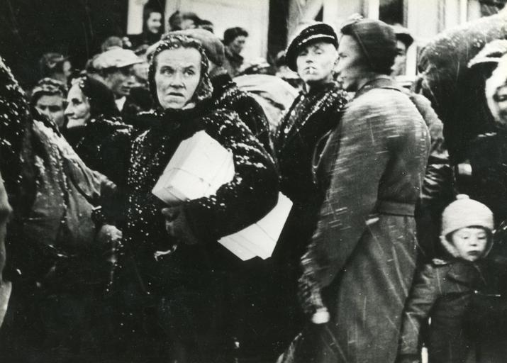 | Keywords: andre verdenskrig andreverdenskrig 2. verdenskrig 2verdenskrig nordnorske flyktninger nordnorskeflyktninger nordmenn i sverige under krigen nordmennisverigeunderkrigen world war ii worldwarii vårslipp vårslipp 2012 vårslipp2012 tvangsevakuering people Flyktninger fra Nord-Norge til Sverige. Under tyskernes tvangsevakuering av Nord-Norge oktober 1944 lyktes det en del av sivilbefolkningen å ta seg over til Sverige. Under store strabaser og lidelser, hvorunder det også inntraff dødsfall, strevet de seg frem over fjellviddene inntil de til slutt var i sikkerhet på svensk område. I matkøen i Kiruna så man en gammel kone som i en pakke oppbevarte de sine dyrebareste eiendeler som hun hadde klart å redde. RA/Pa-1209/Uc¬¬/68/1/S5412 Flyktninger fra Nord-Norge til Sverige. Under tyskernes tvangsevakuering av Nord-Norge oktober 1944 lyktes det en del av sivilbefolkningen å ta seg over til Sverige. Under store strabaser og lidelser, hvorunder det også inntraff dødsfall, strevet de seg frem over fjellviddene inntil de til slutt var i sikkerhet på svensk område. I matkøen i Kiruna så man en gammel kone som i en pakke oppbevarte de sine dyrebareste eiendeler som hun hadde klart å redde. RA/Pa-1209/Uc¬¬/68/1/S5412 Flyktninger fra Nord-Norge til Sverige.