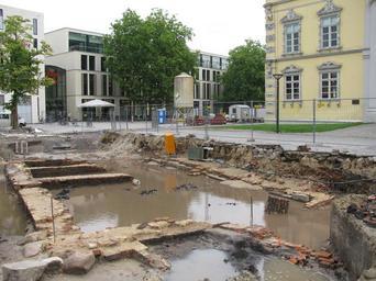 | Keywords: Oldenburg Torhaus der Burg.JPG en Excavation of the gatehouse of the medieval castle of Oldenburg Lower Saxony Germany de Das Torhaus der verschwundenen Burg Oldenburg wurde im August 2011 bei der Neupflasterung des Schloßplatzes entdeckt es war bislang nur durch historische Abbildungen bekannt Zwischen dem Torhaus und der Burg dem heutigen Schloß befand sich die den Burggraben überspannende Holzbrücke Glücklicherweise konnte der Fund gründlich archäologisch untersucht werden wenn auch sein Standort leider nicht im neuen Pflaster markiert wurde own Anaconda74 2011-08-27 Castles in Oldenburg Oldenburg Buildings in Oldenburg Oldenburg Ruins of castles in Lower Saxony Castle gates in Lower Saxony Cc-zero |