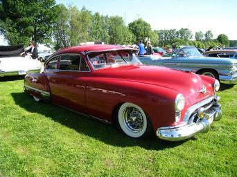 Keywords: oldsmobile red grass exhibition people tree summer cars