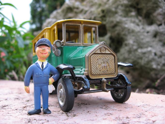 Keywords: oldtimer old bus gas station attendant traffic collect model car nostalgia macro past one aral old time collector collection retro flea market toys