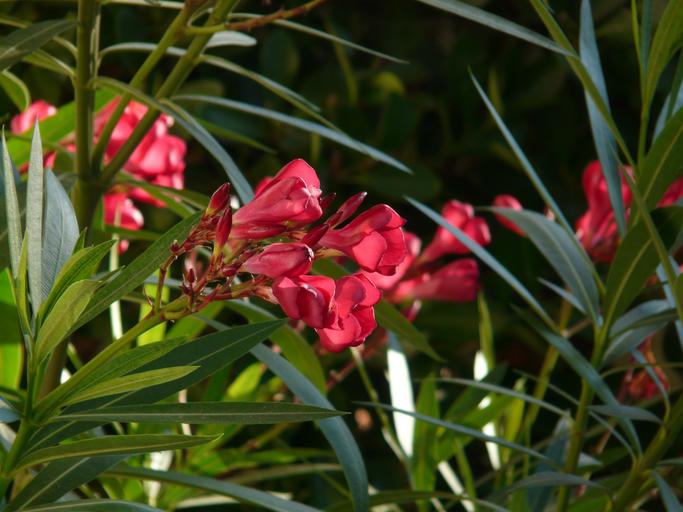 Keywords: oleander bush nerium oleander laurel rose dog gift greenhouse apocynaceae flower blossom bloom red ornamental shrub back light