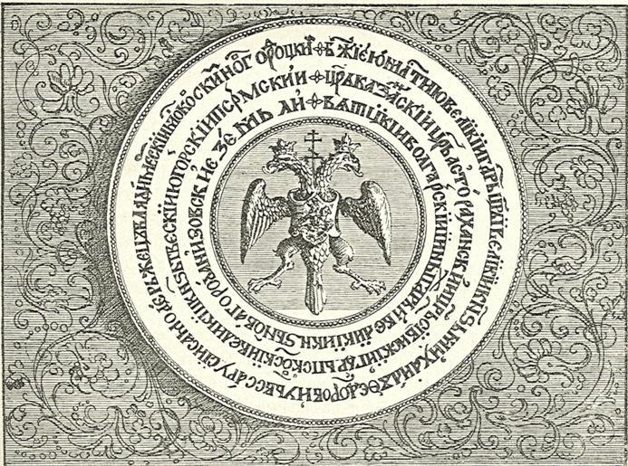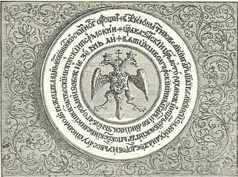 | Keywords: Olearius seal MF.gif  ru Печать  ихаила Федо овича Описание путешествия в  осковию и че ез  осковию в Пе сию и об атно http //www booksite ru/enciklopedia/album/2 htm Адам Олеа ий / Adam Olearius middle of 17 cent PD-old Adam Olearius Coats of arms of the Tsardom of Russia Seals of Michael I of Russia |
