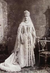 | Keywords: Olga Repnina.jpg ru Княжна Ольга иколаевна Репнина-Волконская в замужестве ге ц Лейхтенбе гская 1872 1953 скан Фотог афия 1890-е Photographs in female court uniforms and dress of Russia House of Repnin-Volkonsky Georgiy Nikolaevich Duke of Leuchtenberg PD-old |