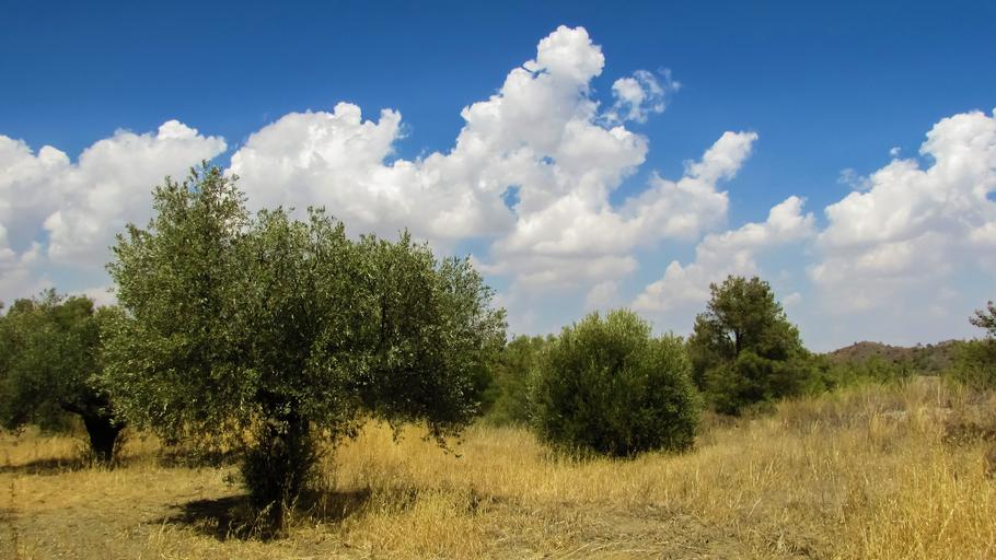 Keywords: olive trees landscape countryside rural nature green field summer mediterranean scenery clouds cyprus