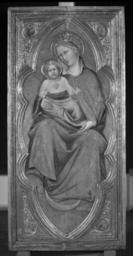 | Keywords: Olivuccio di Ciccarello da Camerino - Madonna and Child with Saints Peter, Paul, John the Baptist, and Francis - Walters 37699 (2).jpg The intact condition and unique format of this altarpiece make it a truly remarkable painting The central panel depicts a stunning Madonna and Child flanked on the left by half-length figures of St Peter above St John the Baptist and on the right by St Paul above St Francis of Assisi The Virgin's robe is carved and decorated with gold leaf that shimmered in the candlelight a surface treatment common in Byzantine paintings Because of the crescent moon at her feet the rays emanating from her body and the gold curling through her cloak the Virgin seems to hover behind the frame The molding of the inner frame crops the composition like an open window offering a glimpse into the sacred timeless realm beyond On the back of the left wing are two preparatory drawings by the artist For more information on this piece please see Zeri catalogue number 41 pp 68-71 ca 1410 1420 Medieval oil and gold leaf on panel Central panel H including frame 63 x W 30 3/8 x D 1 1/4 in 160 x 77 2 x 3 1 cm ; Left wing H including frame 63 1/4 x W 27 9/16 x D 1 1/4 in 160 6 x 70 x 3 1 cm ; Right wing H including frame 63 5/16 x W 27 5/16 x D 1 1/4 in 160 8 x 69 3 x 3 1 cm accession number 37 699 22289 Don Marcello Massarenti Collection Rome prior to 1897 mode of acquisition unknown 1897 catalogue no 30 as Tuscan School early 15th century Henry Walters city Baltimore Walters Art Museum Henry Walters Acquired by Henry Walters with the Massarenti Collection 1902 Transcription Inscribed on Virgin's halo AVE MARIA GRATIA PLENA; Translation Inscribed on Virgin's halo Hail Mary full of grace; Transcription Inscribed on the bottom left panel in two roundels P E; Transcription Inscribed on bottom of right panel in two roundels T R; Inscribed on scroll held by John the Baptist ECCE/AGNVS/DEI QVI/TOLLIS/PECCATA MVNDI; Translation Inscribed on scroll held by John the Baptist Here is the Lamb of God who eliminates the sins of the world God's Minstrel St Francis of Assisi The Walters Art Gallery Baltimore 1982 place of origin Marche Italy <gallery> File Olivuccio di Ciccarello da Camerino - Madonna and Child with Saints Peter Paul John the Baptist and Francis - Walters 37699 jpg </gallery> Walters Art Museum license 2D Medieval art in the Walters Art Museum Olivuccio di Ciccarello da Camerino Paintings in the Walters Art Museum Madonna and Child |